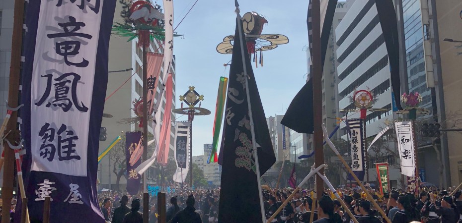 But a good snooze later and it was time to go again. I won’t say the jet lag has been survived but fair to say I felt pretty good and it was lovely to be back in in Okinawa surrounded by friends from all over! So once the alarm went I decided to go for a wee run to Naminoue to see the sun come up but also to see the rope that was in place for the great tug of war later. I had more or less lost track of the days and didn’t realise that it was in fact Sunday morning so as I went up Kokusai dori the few people I met were clearly on the way home and I can only imagine what they thought of this red faced Irish woman running towards them in their inebriated state!