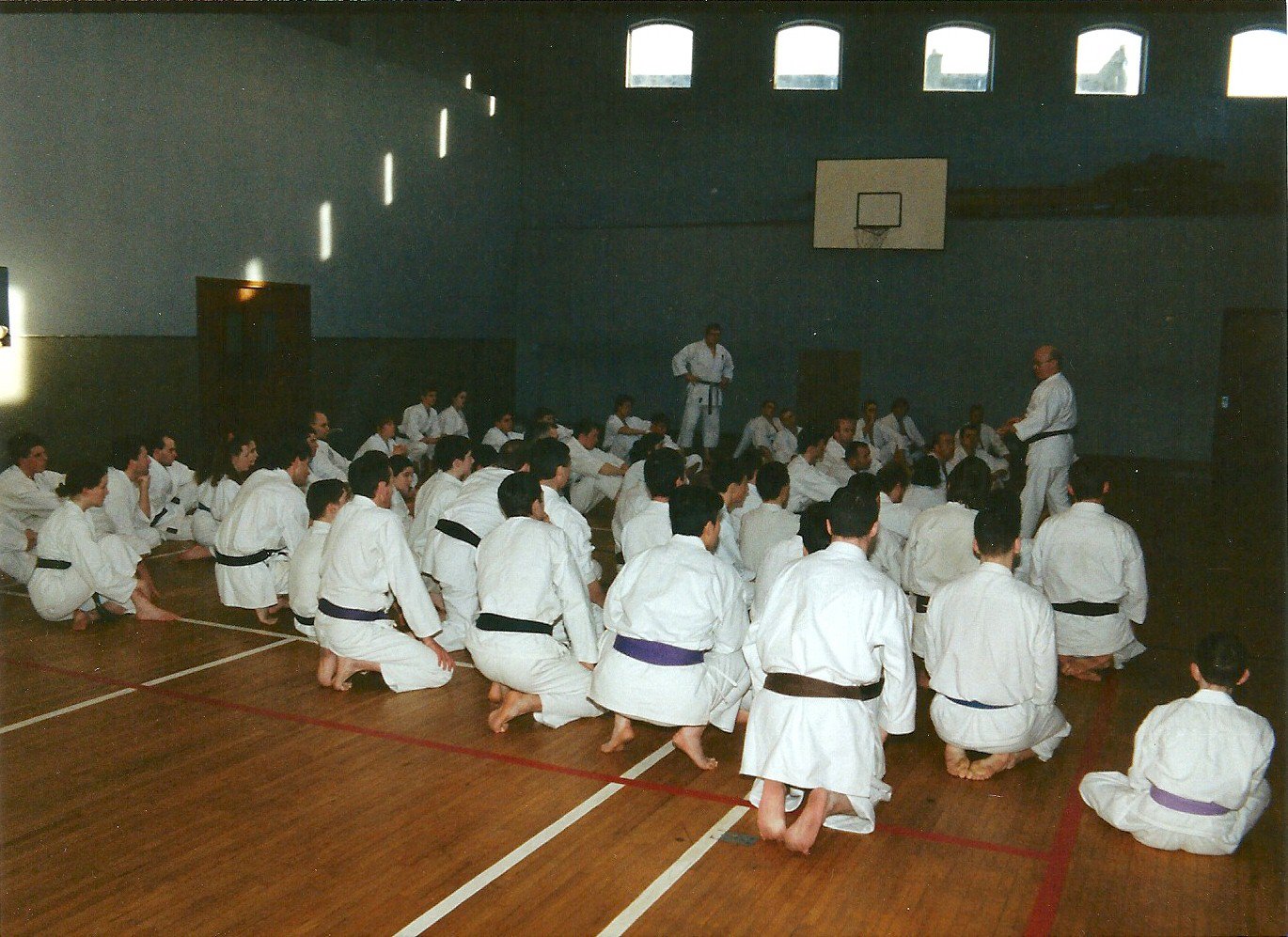 As a young black belt there was always the danger that you would end up facing someone who was a superduper Dan grade and then there was the horror of the group scenario. I have a distinct memory of a fear that landed on me like the literal tonne of bricks when I ended up in a training group that included Senseis Hastle, Williams (Bermuda), and Susan Dwane. That was upstairs in the Lee Maltings and we were doing the bunkai to Tekki-Shodan with Sensei Steve Cattle. When we had to ‘pair up in groups of 4’ and I was plucked from the back row to join a group of people I had admired for years. I was literally cursing under my breath as I walked from the back of the dojo to the group as directed by the Sensei, who thought he was helping me.