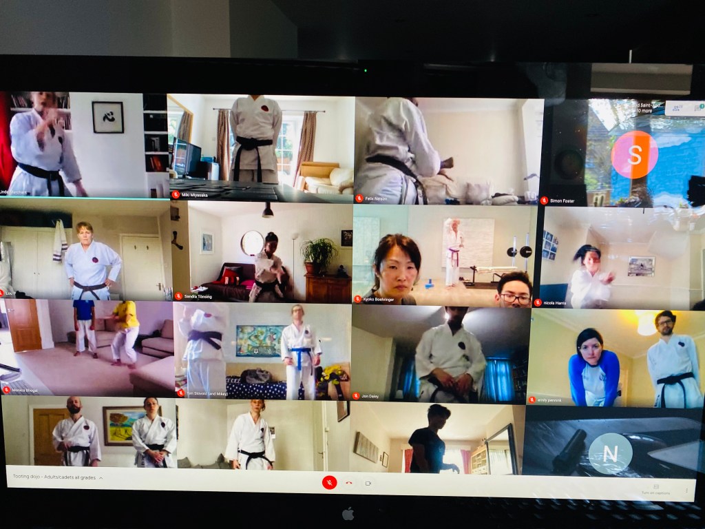 The first was the new job that I was “gifted”, IT support, now I’m more than happy to help, well anyone, but you have to understand the blood freezing horror of having to help a super duper Dan grade get either into a class or just online. This would always happen just before a class was due to start, resulting in *that* phone call and the problem of fixing a situation with no knowledge of which equipment was involved or even if they had the right link! Naturally the caller was stressed and time was short, so being clear and concise was of the utmost importance…picture the scene, you have a list of possible scenarios to work through to fix the problem and then other very helpful people decide to chip in and also give you their diagnosis… which of course you’ve tried and now you have three people talking to you and still no solution for the person on the phone! The second part of this role is the fact that the population has now been divided into either Zoom or Hangout/Meet people and all you need to do is to take someone out of their chosen ecosystem and it all goes horribly wrong. And so it became the norm to start training sessions already sweating and hoping that the internet didn’t crash in some distant London suburb!