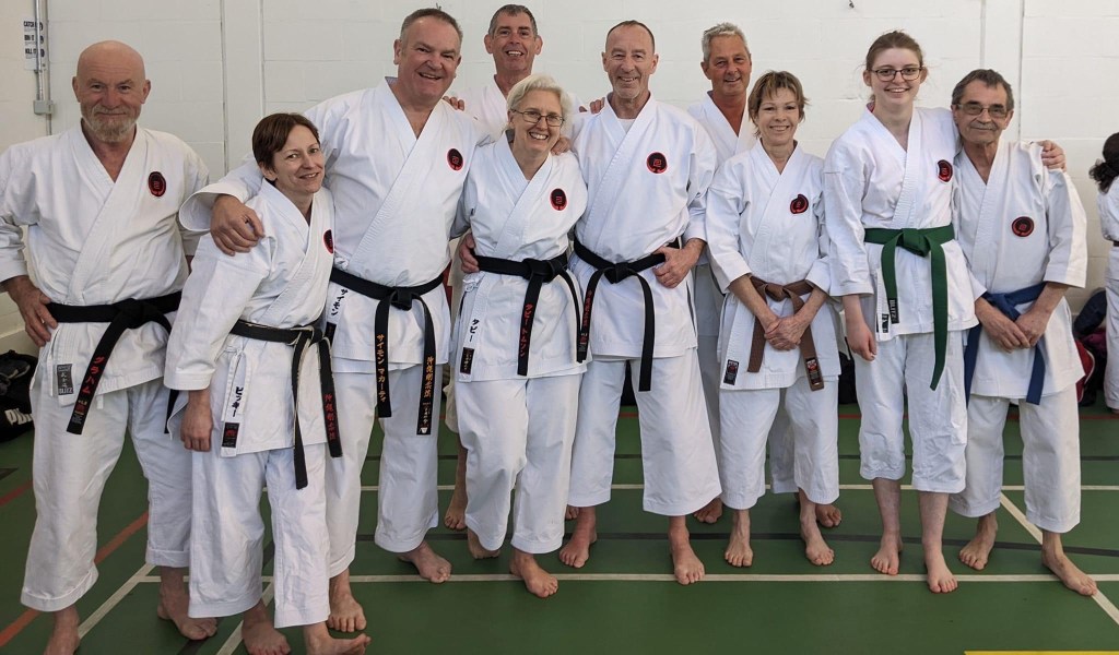 The following day, the Gasshuku started. Now Friday nights can go either way, you can be all focused on Sanchin and training in that way, or it can go the other way and that’s what happened. Sensei Ernie set off at a pace and my legs were horrified. We covered a load of kihon and then worked with a partner, the focus landing on speed of movement (Sensei Ernie doesn’t really do slow) multiple blocks and culminating in a series of kicks or takedowns. There was little time for thinking. Getting stuck in, my face quickly went to red and at the cold (it was freezing outside) was quickly ousted from met bones. Then we had to jump into “pairs of three”. One person did Kata x 2 and the remaining pair kumite. At this point my legs had lodged a grievance against me and were on strike. I had no access to power, movement or control over them. I was basically moving like a drunk penguin and that’s being generous.