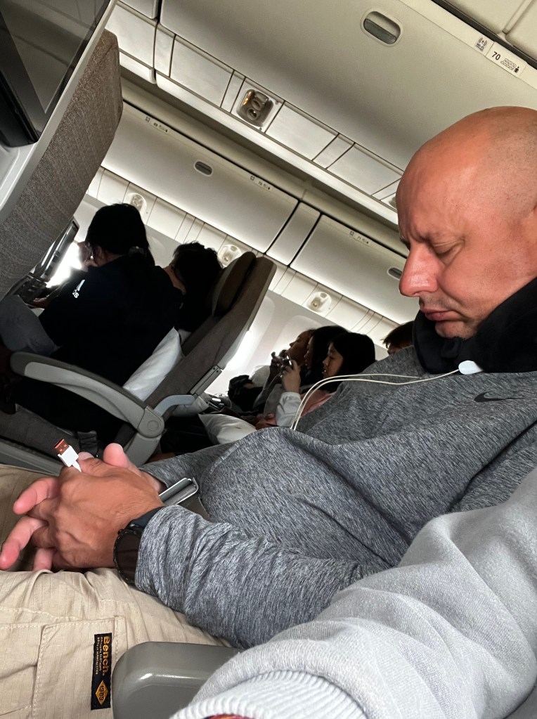 I’m sat on an aircraft with some dude beside me who reeks of beer and cigarettes and who has taken to manspreading in the most gigantic way possible. Oh and he snores. Today, nothing can tame my excitement. You see after 2 failed attempts (pandemic, Cancer), I am going back to Okinawa. I’m sure it is frowned upon to hug immigration officers so I hope that the one I get on entry is in one of those big glass “rooms”. I am on a flight to Shanghai where I have a few hours and then onto Okinawa, we choose this route before and it’s not too bad. I’ve been hearing stories about long queues in Shanghai when you go through security (again, never understood that) so we shall wait and see what that brings.