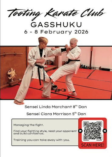 We went out for food, which was lovely, and it, it meant that by Sunday, I was conscious that I was getting tired, and I needed to up the delivery and bring something to the table. So what I brought to the table on Saturday– on Sunday, we started off with a focus on functional fitness. Now, set this up as a circuit so that we had, yep, lots of equipment, so people could have some fun with the tank and having things tied onto their ankles and step-up boxes and all sorts of things, but always had a number of people working through exercises, and the exercises we were doing was very much around-… one person attacking, one person blocking, so present and respond. What happened? We did a couple of circuits of this, and it was interesting to see, because people were getting tired, they were relaxing. There was lots of laughter, there was lots of focus on moving, uh, you know, people congratulating each other if they’d, you know, managed to pull off a technique, et cetera. But I really wanted to show, look, this is a lot of what we do in kumite from the point of view of, you know, squad training, et cetera. You don’t actually spend a huge amount of time w- doing kumite when you’re training it. A lot of it is the preparation work, that takes place in the background. Um, so this was a crazy session. Um, it went on a bit longer than it should have, and I do apologize to my, uh, co-host of this, um, seminar, which was Sensei Linda, because I did run over, but it was good fun, and people were into it. And, uh, yes, lesson for myself is definitely to manage my timing a little bit better in these gashukus. Um, we’d also covered things like jiyu ippon kumite and, and, uh, you know, other elements over the weekend. So as we moved closer and closer and closer to the end of the gashuku, I wanted to help people address something that, for me, is very important. ‘Cause we weren’t just teaching… I wasn’t teaching competition kumite, I was teaching kumite. And one of the things that I often struggle with for people is, is helping to define when the fight is over. How do you get away? How do you walk away? You know, I’m by far not in any way, uh, experienced in ground fighting, so if it goes there, that’s a really bad outcome for me. So I always want to get away. So we’d, we’d done a little bit of work around that also. Um, and towards the end, then it became randori. Um, and what was interesting was the speed of the randori went down, and that is not a bad thing. And it went down because we had that move from unconscious incompetence through to conscious competence, I think. And with relaxation, people were starting to move a little bit. They were starting to have techniques in their bag that they could use, which for me is really important, ’cause anybody who’s a kumite competitor will know, you don’t just go out there and throw anything.