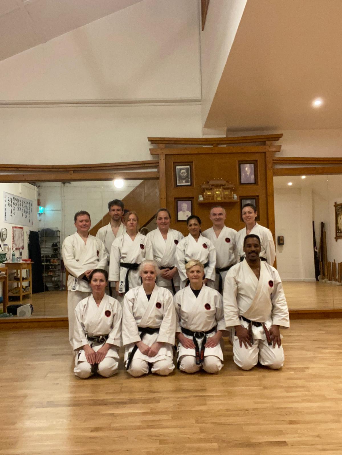 Um, some of the, the people who were more comfortable with kumite, I guess, um, in fact, kind of fitted that stereotype: bigger, stronger, not necessarily faster, but they felt more in control, and they were using physicality from what I could see as, as the actual course went on. Hopefully, towards the end, they were starting to see how things like footwork, timing, and all of that kind of, you know, all those little elements came into it. Um, Saturday was a long day. We started to introduce things like fatigue. So fatigue was then starting to reveal certain things. It was showing where tension lied. We didn’t actually have any ego flare-ups, which was really good. It was something I was worried about, but yep, um, really started to put people under pressure to understand the small little nuances of kumite, and we did a lot of those supporting exercises, which lead to better awareness, better judgment, better timing, more mobility, um, but also bringing that need to use your brain. So there were some patterns in there, which I knew would be new to the, the group that I was teaching. Again, we started to break them down so that they had something they could take away. It was a three-step forward movement, but it does put you under pressure, and we had a big turnout on Saturday, which was amazing, and, you know, kudos to everybody who showed up. It was such a buzz. I walked away very, very happy. Um, I could see where I needed to improve on my delivery. There were some non-English speakers in the group, and apparently, at one point, I went very Irish. So yes, focus on slowing down because I didn’t have my subtitles turned on, shall we say? So yes, I did take that on board, and my enthusiasm at, at times needed to be managed, she says, slowing down. Saturday, we went out for food, uh, Saturday night, I should say.