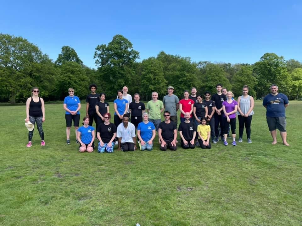 Here is a PSA, it’s a long way and a big hill from Wimbledon Train Station to The Common. I was also a wee bit late so I was yomping. Finally I could see the corner where we usually met and it was full of people! Everyone was wearing a karate t-shirt of some sort and now that hugging is legal… there were hugs!!! I can’t describe how lovely it was to see everyone. Loads of the kids showed up and I don’t know who was more happy them or the parents. We had an hour of training before the class swapped over to adults. Strangely, we’ve been doing more training on line than we did before Covid and it was great to see how everyone had maintained their levels.